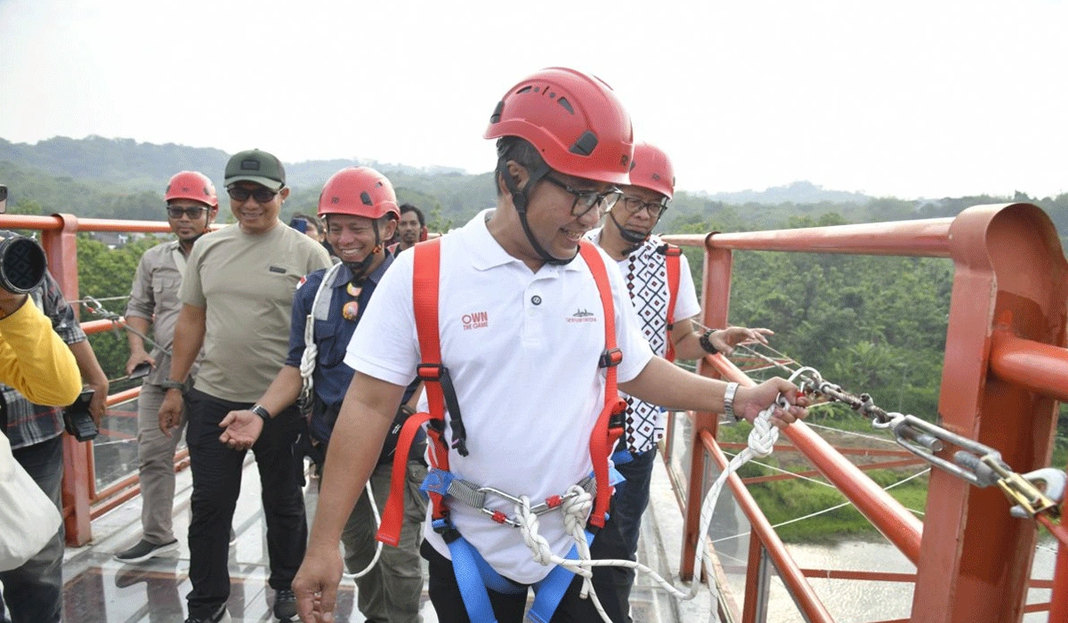 “Setiap kelompok yang naik jembatan kaca kami batasi maksimal 50 orang agar nyaman dan aman,” jelas Wing Wiyarso. Dengan standar keamanan yang tinggi, pengunjung dapat menikmati sensasi melintasi ketinggian tanpa khawatir terhadap risiko.